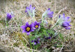 Vi beundrar vårblomster som backsippor.